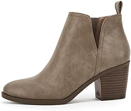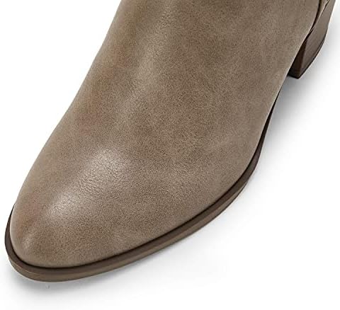 Coutgo Womens Cut Out Ankle Boots Chunky Stacked Heel Almond Toe Slip on Western Booties