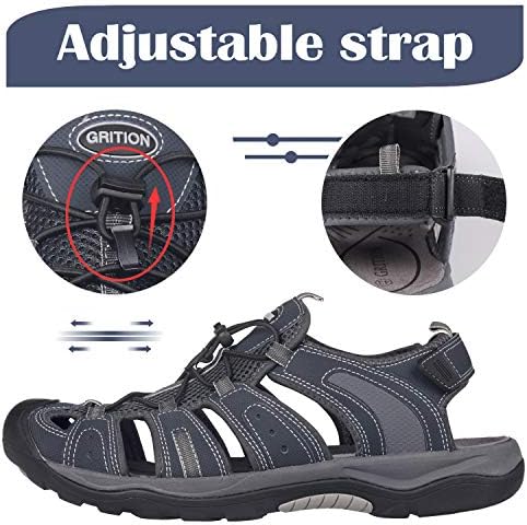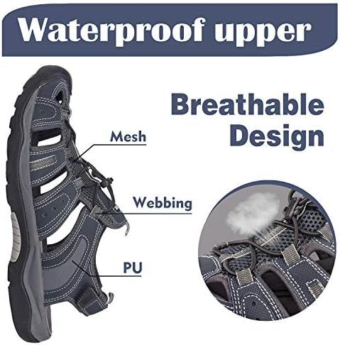 GRITION Mens Outdoor Hiking Sandals Closed Toe Waterproof Fisherman Walking Water Sandals Lightweight Athletic Shoes Easy Wearing Adjustable Protection Summer