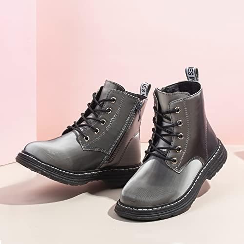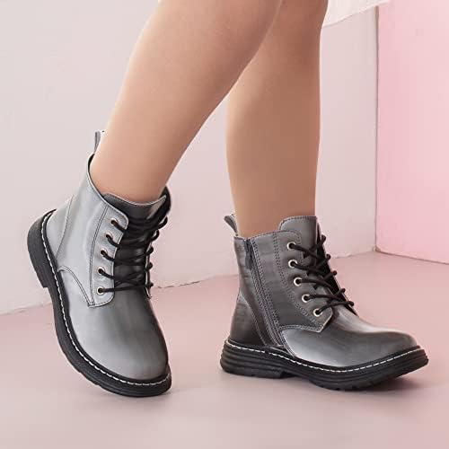 JABASIC Girls Boys Ankle Boots Lace-Up Waterproof Work Boots with Side Zipper