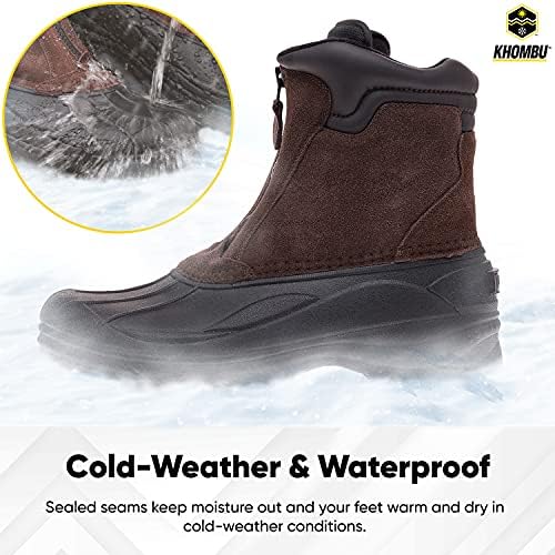 Khombu Mens Cold Weather Boots with Front Zipper Closure (Paul) Waterproof Insulated Mid-Calf Winter Boots – Comfy, Durable, Keeps Feet Warm & Dry