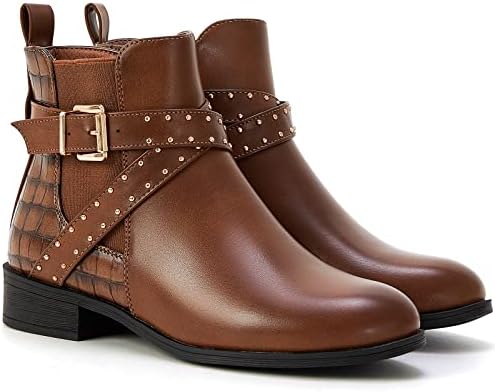 Brand: TINSTREE Size: 5 / 6 / 7 / 8 / 10 / 11 Crowd: Women / Ladies / Girls / Juniors Features: Rivet Diamond / Double Straps / Closed Toe / Side Zipper / Chelsea Style / Sole Rubber Color: Black / Brown (Classic Color to choose) Style: Fashion Boots for this fall, winter, spring, christmas, new year gift, stylish business casual style Matching: Jeans, Shorts, Leggings, Dress, Trousers, Sweaters Occasion: Shopping, Daily Leisure, Business, Work, Office, Dating, Parties, Street, Clubs, Dressy