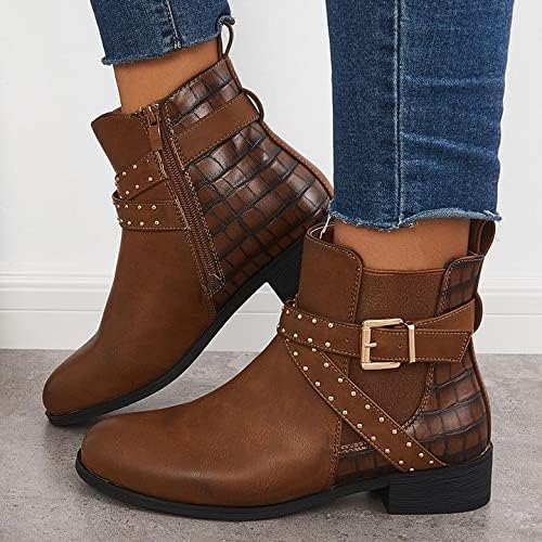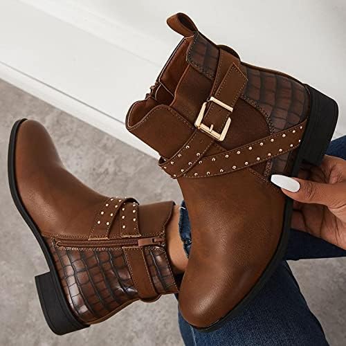 TINSTREE Women’s Ankle Boots Western Rivet Buckle Zipper Booties Texture Patchwork Chelsea Style Bootie
